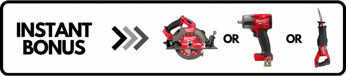 Offers only valid in-store at participating Authorised Milwaukee® Retailers between 01/10/2025 and 12/10/2025. Instant bonus must be claimed at point of sale and cannot be exchanged, transferred or taken as cash. While stocks last.