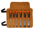 - 6 pc set with tip protectors in a premium leather roll pouch