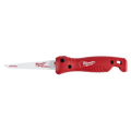 Our Milwaukee® Folding Jab Saw features our new Sawzall Drywall Blade. The 6" 8TPI Sawzall Drywall Blade features a large piercing tip for easy plunge cuts and fleam ground teeth for smooth cuts. The handle fits all 6" Sawzall™ blades for quick cutting into multiple materials and the blade will easily fold into the handle to avoid piercing through tool pouches and bags. The Folding Jab Saw is complete with ribbed indentions to increase handle grip. The folding jab saw also features a slide lock design offers the fastest blade change to increase productivity on the jobsite and a lanyard hole for convenient tethering.