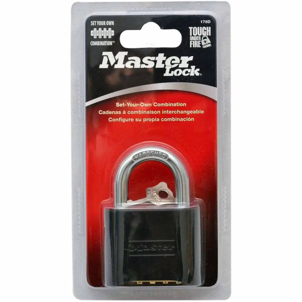 Set Your Own Combination Padlock features a 2in (51mm) wide solid body for strength and reliability. The 8mm diameter shackle is 1in 25mm long and made of hardened steel, offering extra resistance to cutting and sawing. The 4-digit dialling allows for thousands of possible numeric combinations. The Limited Lifetime Warranty provides peace of mind from a brand you can trust.