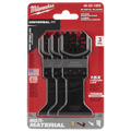 Our Universal Fit OPEN-LOK™ Titanium Enhanced Bi-Metal Metal Oscillating Multi-Tool Blades are made from premium high-speed steel. These bi-metal blades are ideal for cuts in soft metal, wood, nails, PVC, and drywall. The MILWAUKEE® bi-metal multi-tool blades are enhanced with a titanium coating to deliver longer life and faster cuts than the previous generation. These oscillating multi-tool blades are designed and made in the USA with global materials. Available in 28mm,45mm cutting widths in 1 or 3 packs and 89mm cutting width in a 1 pack.