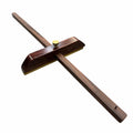 This Panel Gauge allows lines to be gauged past the centre of a 56" wide panel. The stem is approximately 30" long (this is based on the lengths of timber available at the time) and the head 9" wide with a brass wear strip fitted inside a rebate which rests on the edge of the panel to be gauged. One one end of the stem has a steel marking pin, the other end has the facility to insert a short, standard sized pencil to mark lines.
