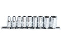 Set includes:, 3/16, 7/32, 1/4, 9/32, 5/16, 11/32, 3/8, 7/16 & 1/2” Sockets, 1 x Socket Rail