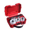 Milwaukee® HOLE DOZER™ with CARBIDE TEETH hole saws provide 50X life in extreme multi-material cutting applications when compared to bi-metal hole saws while cutting in high RPM. HOLE DOZER™ with CARBIDE TEETH hole saws can cut through stainless steel, cast iron, fastener-embedded wood, cement board, fiberglass, plaster and asphalt shingles with ease. The 3 TPI design provides fast cuts while deep gullets clear material fast while cutting. The All-Access slots feature solves the frustration of plug removal for less downtime and more productivity between holes. The latest slot design gives increased pilot visibility for accurate placement and faster chip ejection keeping cuts cool. The HOLE DOZER™ Thermoset anti-friction coating allows for cooler and faster cutting. The HOLE DOZER™ with CARBIDE TEETH hole saw has a cutting depth of 41mm, allowing clearance to handle cuts in a wide range of materials. Milwaukee® proudly makes HOLE DOZER™ with CARBIDE TEETH hole saws in the USA. This kit comes in a fully customisable case with interchangeable pegs that fits into Packout™ organisers.
