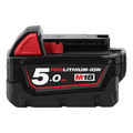 The M18™ REDLITHIUM™-ION 5.0Ah Battery features superior pack construction, electronics, and performance to deliver more work per charge and more work over the life of the pack than any battery on the market. M18™ REDLITHIUM™-ION 5.0Ah Battery features an advanced design, protecting the pack against harsh jobsite environments. This protection routes water away from the electronics and out of the battery pack, extends run-time and life by minimising heat, and prevents pack failures from vibration or drops. This unique to MILWAUKEE design also allows the battery to operate in extreme cold weather conditions (below 0°F/-18°C). Managed by MILWAUKEE’s exclusive REDLINK Intelligence, the battery features overload protection to prevent you from damaging your cordless power tools in heavy-duty situations, while the discharge protection prevents cell damage. It also provides full system compatibility with 120+ M18 cordless solutions. Upgrade to the M18™ REDLITHIUM™-ION 5.0Ah Battery to instantly increase the run-time and durability of your M18 cordless tools.
