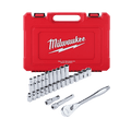 Our 28-Piece Metric ½” Drive Ratchet & Socket Set is designed from the ground up to offer you better access in tight spaces and maximum tool strength. The 90-tooth ratchet tool offers 4° of arc swing and a slim profile design, allowing you to work in tighter spaces. The MILWAUKEE® sockets feature FOUR FLAT™ sides, which deter rolling and are wrench-ready for enhanced versatility. Our optimised socket geometry helps reduce bolt rounding and stripping. The ½” sockets have their metric measurements stamped into the flats for improved, easy-to-read visibility. The ½” ratchet and socket kit comes with a removable inner tray, designed to be stored long-term in a steel storage chest. The set also comes with a durable carrying case for ultimate portability and accessories so you can get every job done, both in the garage and on the jobsite. Our drive ratchet and socket set is backed by a lifetime guarantee.