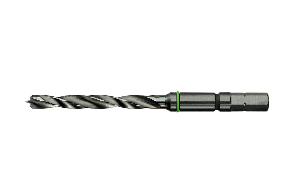 The Spiral Drill Bit with Centrotec Shank provides a precise, compact, and durable solution for drilling all sorts of wood, glued solid wood, MDF and acrylic glass. Precision ground HSS steel stays sharp longer for precise hole drilling and a long service life. Centrotec shank can also be used with all standard three-jaw chucks for no-slip performance. The Festool Centrotec System is designed to deliver a better transfer of force between the drill and the bit, with no chance for bit slippage or marring of the drill bit. The Centrotec Chuck design enables a full 1/2 pound reduction in weight, and reduces the overall length, or clearance, by nearly 1-1/2 inches. The quick-change Centrotec system delivers a faster, more efficient means of changing bits and driver tips than any keyless chuck system, and virtually eliminates run out.