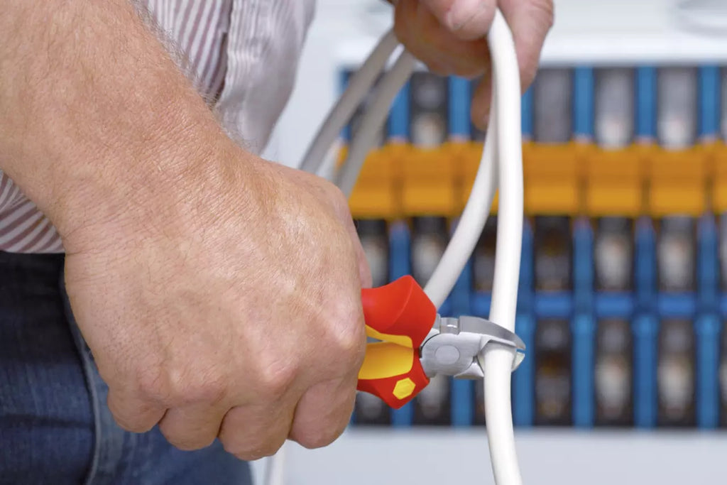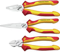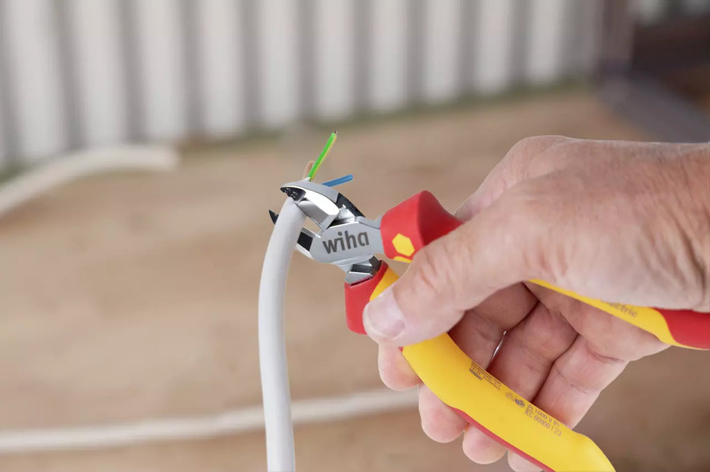 Safety is the top priority when users are working on live parts. The Professional electric plier set supplies the perfect basic equipment for electricians and other electricity specialists. Wiha needle nose pliers with an extra-long plier head are eminently suitable for inserting low-lying components. Wiha combination pliers provide a safe, non-slip grip in all work situations. Also contained in the set, the diagonal cutters impress as a universal cutter to slice soft and hard wires. Its Special DynamicJoint® design also reduces effort required for cutting. The ergonomically shaped multi-component handles with anti-slip protection also ensure users can work safely and comfortably. Thanks to their chrome-plated plier head, they are also protected against rust. These pliers undergo routine individual piece testing as per the international IEC 60900 standard, thus providing users with a tool to work safely on live parts up to 1,000 V AC.
