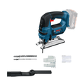 Equipment & ApplicationThis cordless jigsaw is ideal for curved and cross cuts in solid wood, chipboard, and wood composites as well as for thicker or harder materials. It is compatible with the Bosch Click & Clean dust extraction system and other Bosch vacuum cleaners, as well as with all Bosch Professional 18 V batteries and chargers (Professional 18V System) and guide rails via adapter.