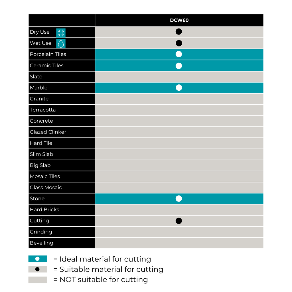 - Ideal for cutting ceramic tiles, porcelain, marble and stone