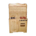 A Wooden sink/ stove / hutch combination, for any play kitchen. The bowl is removable for easy cleaning. The cupboard underneath with one shelf provide added storage and there are two slide out shelves in the stove.