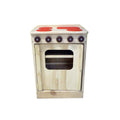 A toy stove, the safest way to cook in a play kitchen. There is a slide out shelf and a hinged door to the side which means that the children wont stand on the door.