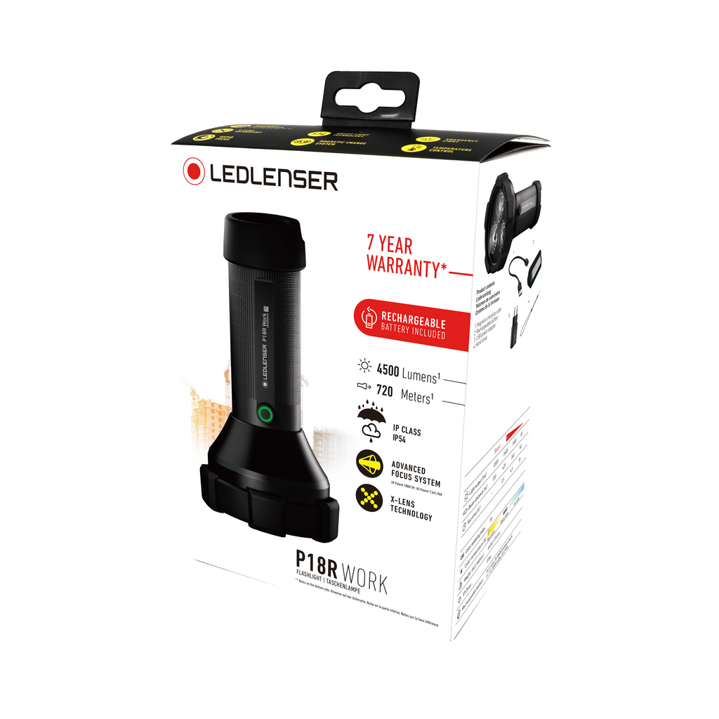 • The P18R Work torch comes with a battery status and charge indicator and a low battery warning so you always know where you stand on power