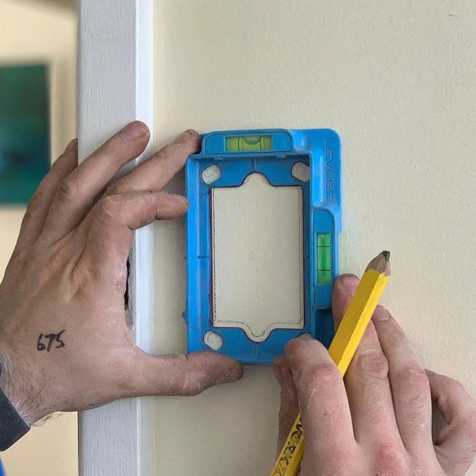 Clips on to powerpoints, switches, and outlets for a quick, perfectly level install—while doubling as a precise cutout template for plaster and joinery.