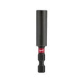 Milwaukee® SHOCKWAVE Impact Duty™ Magnetic Drive Guides are engineered for extreme durability and up to 30x life.They feature an optimised shockzone™ that absorbs peak torque and prevents them from breaking. The stainless steel sleeve slides over the fastener for improved stability while the barrel has laser etched depth gauge for increased fastener control. The drive guide is magnetic to hold the fastener, while a c-ring retains the driver bit.