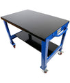 The TradeQuip "Made for the Trade" Mobile Workbench combines the strength of heavy-duty enamelled steel with the convenient mobility of two 360° lockable swivel castors. Designed for easy maneuverability on uneven surfaces, each castor locks fully in place to hold the workbench steady for projects requiring precision. It’s even stylish enough to roll up next to the BBQ for backyard get-togethers. Easy to move in any direction this workbench is great as a middle-of-the-workshop assembly table, extra worktop, or even a primary workbench for smaller workshops. When in the desired position, engage the two swivel wheel castor brakes to avoid any unwanted movement. The rugged, all-purpose design goes where you need it to... and stays there to get the job done...