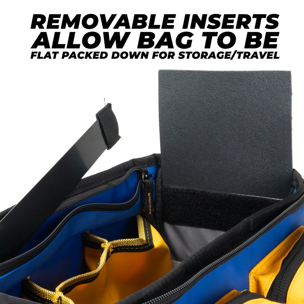 - 3 x large internal pockets, with small pockets and tool loops