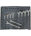 This "Borum Industrial" Jumbo Combination Spanner Set includes 10 popular imperial large-sized combination wrenches from 1 5/16in. to 2in. Made of heat-treated drop forged steel with a chrome vanadium finish. The high-quality, chrome plating looks great and provides a durable, easy-to-clean finish. The ring ends have 15 degrees of offset for knuckle clearance and increased access in tight spaces. Kit includes hard wearing storage roll. The ring end on these super-sized combination wrenches gives you a steady, sturdy grip on nuts and bolts whilst the open end offers an easy option in awkward or confined spaces.