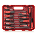Our 12 piece screwdriver set features hardened tips & forged shanks and provides professional grade solutions and durability to the user. Bit types are marked on the cap of each tool for quick identification and increased efficiency. The comfortable Tri-Lobe handle allows users to comfortably apply more leverage.