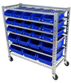 This portable TradeQuip "Made for the Trade" rack of storage bins can be used to store small tools, nuts, bolts, parts, hobby gear and more! Just lift out the bins you need, take them to your work area, fill them up and put them back in place when you're done. Each of the nine tiers is built sturdy and tough to hold a wide assortment of items. A great set of storage bins for busy but tidy workshops and garages.