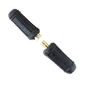 Dinse style connectors for quick & reliable connection to welding power sources or extending weld cables. Neoprene rubber insulation & tapered twist lock action