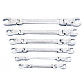 GEARWRENCH family of flare nut wrenches are a great addition to the toolbox of anyone that needs to loosen and tighten hex nuts. They are available in ratcheting flex head, flex head, and standard pattern bodies. All wrenches have 2 sizes on each wrench, saving space in your tool box. They are manufactured from durable alloy steel and all feature a bright, full polish chrome finish. Ideal for use on hex nuts where tubes are present, such as a vehicle's fuel and brake lines.