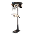 The beauty of Radial Drill Presses is the variety of angles that can be set for otherwise difficult boring operations. These specialised machines function like normal drill presses that bore in a vertical plane, but the unique rotating head and motor upper assembly also allows the head to turn laterally, left and right for angles too! This is ideal for boring projects that lie on the table or are too large to do so. Situations that cabinetmakers, farmers, and model makers frequently get into. In addition to the adjustable head, the work tables can also be titled and locked in position for boring holes at a set angle. Adjustable depth stop guarantee that multiple holes will all be drilled at exactly the same depth. Multi-step pulleys that let you change drilling speeds just by repositioning the drive belts. Large handles make table and head adjustments easy. The Radial Floor Mount Drill Press has the same great features as the bench model but has larger components in proportion with the added height and capacities of this floor model – large base, column, and table assemblies. The work table on this model is the round shape and will turn 360° as well as tilt 45° left and right.