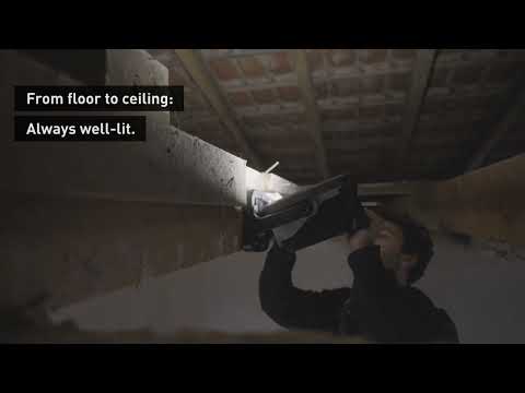 - Position the cordless construction light however you need – magnetically on scaffolding or steel doors, on a wall, or on a tripod. Swivel the housing into almost any position to perfectly light up your work area.