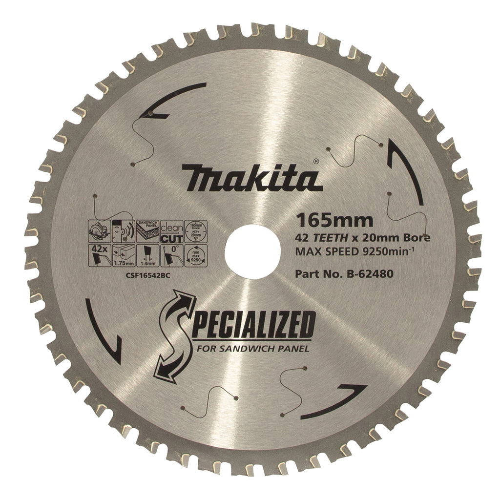 Makita 165mm x 20mm x 42T Coolroom Panel TCT Circular Saw Blade B-62480