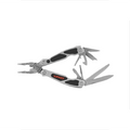 Spring-loaded pliers with wire cutter, 2.0 in. Blade, a built-in LED, saw blade, lanyard hole, Phillips (1) and flathead (3) screwdriver tips, bottle opener, wire stripper, awl, file with nail pick, can opener. 2 x CR927 batteries included.