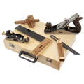 An exceptionally good selection of tools ideal for a starter. Premium quality kit consisting of a smoothing Plane No 4, a Adjustable mouth block Plane, a try square, an adjustable Bevel and a mortice gauge. The set comes completely packed in a beautiful wooden carry case.