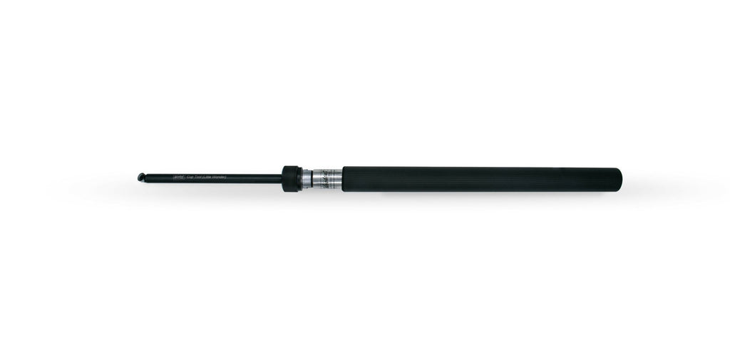 A deluxe 16 inch quick change handle with two collets for 9-10mm shafts and 12-13mm shafts. The collet holds the tools securely without marring them. A twist of the collar loosens or tightens the tool. The spare collet is conveniently stored inside the back end of the handle with a magnet. The Twin Collet Handle features a comfortable rubber grip and measures 1-1/4" diameter by 17". The handle includes 3/8" and 1/2" Collets.