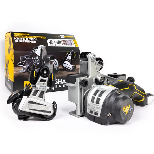 Take complete control of your sharpening experience with the Ken Onion Edition ELITE Knife & Tool Sharpener Mk.2 where full access and visibility revolutionises blade maintenance. This benchtop powerhouse offers precision and control, combined with freehand versatility. The Blade Grinding Attachment offers a wider range of angles from 10° to 35° and three convex edge profiles, while the Sharpening Cassette ensures precise and repeatable sharpening from 15° to 30°. From quick touch-ups to custom grinds on pocket knives, outdoor blades, kitchen knives and more, experience the pinnacle of sharpening performance and freedom. Developed with knife-making legend Ken Onion, sharpen like a pro.
