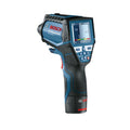 The thermo detector GIS 1000 C Professional accurately measures and documents surface temperature and ambient conditions. The integrated camera documents measured values in photos. Data can also be directly transferred to a smart device via Bluetooth ®, using the free-of-charge Measuring Master App for easy documentation and sharing. Dual Power Source technology allows for use with both a 12 V Li-ion battery or standard alkaline batteries.