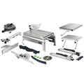 The PRECISIO CS 50 EGB is the perfect solution for cross and rip cuts in applications involving interior fitting, furniture assembly and exhibition stand construction. It's lightweight and folding legs make it easy to transport and set up in seconds. It's 180 degrees swivelling mitre guide and huge 304 mm cutting path means the trimming saw is easily controlled via a multifunction handle and adjustable control elements. The moving splinterguard minimises splintering on both sides of the blade. Dust is efficiently removed when used with a Festool Dust Extractor, thanks to the integrated extraction port. It also comes with neat accessory storage and integrated transport rollers for greater mobility.