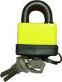 Heavy duty hardened steel shackle, resists sawing, cutting & prying, solid brass cylinder 4 pin tumbler for smooth operation.