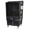 With its compact size, this TradeQuip 'Made for the Trade" Portable Evaporative Cooling unit is perfectly suited to smaller work areas, yet still delivers an impressive amount of air output. Huge in performance, this easy-to-operate unit produces up to 23,000 cubic metres of airflow per hour. It is fitted with a rugged, weather-resistant one-piece moulded polyethylene housing that will not crack or leak. The remote control 3-speed fan forces warm air over rigid water soaked evaporative cooling media to reduce ambient temperatures by up to 10 °C . Adjustable swing louvre feature that offers swinging airflow and allows you to adjust the cooled air output to where you need it.