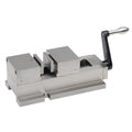 Manufactured from close grained high tensile grade cast iron, and precision ground body. The vise has multiple applications and is useful clamping polygon work pieces, circular and round jobs as well as complex pieces. The round parts can be gripped with superior holding power. This vise has the capability of gripping odd shaped work pieces and eliminates the use of fixtures and jigs.