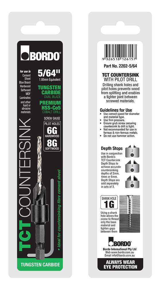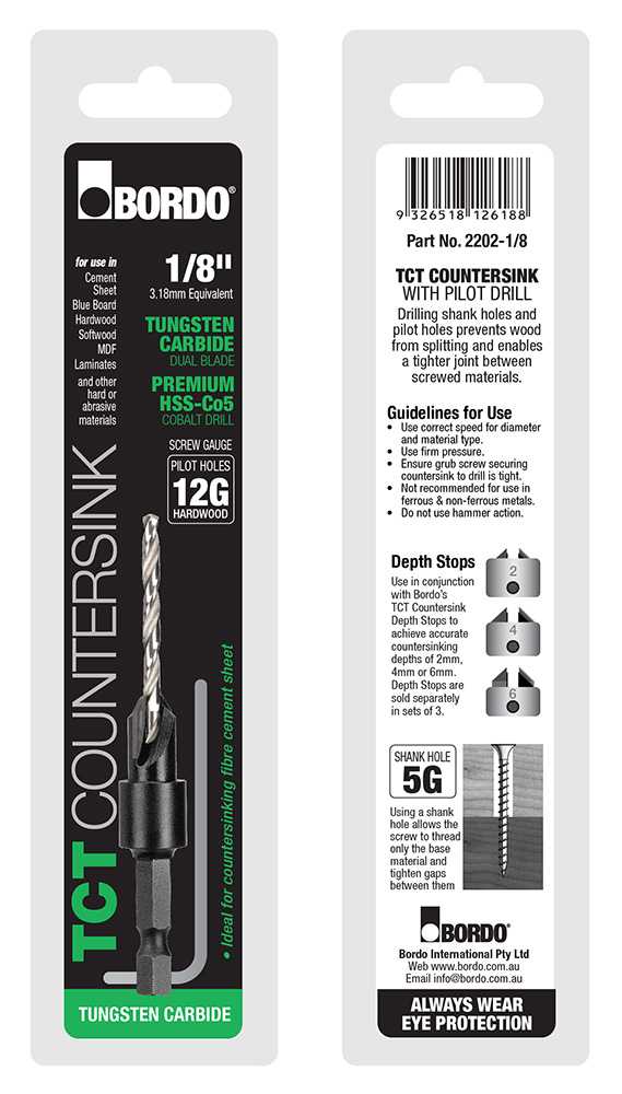 - High performance HSS-Co5 (Cobalt) drill with Tungsten Carbide Tipped (TCT) countersink.