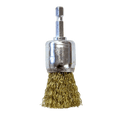 The Brumby 25mm Spindle-Mounted Crimped Cup Brush is fitted with a quick change 6.35mm hex shank. Suitable for use with drills.