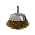 The Brumby 75mm Spindle-Mounted Crimped Cup Brush is best suited for light surface treatment and flexible brushing and deburring on application. The Crimped HD wire can be used on steel, brass, iron, plastic and wood.