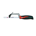 The Milwaukee ® Compact Hack Saw features a compact design that is ideal for small cutting applications. A tool free blade change offers quick blade length changes for increased efficiency in the field and a rubber over mold adds comfort for the user. This tool is great for cutting copper tubing, metal bolts and small PVC.