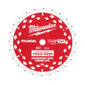 The Milwaukee Thick Kerf Framing Circular Saw Blade offers the straightest cuts and longer life in wood. These blades are designed with a High Performance Thick Kerf, allowing you to get the straightest rip cuts and ultimate stability in softwoods, hardwoods, lumber, and laminated woods. The diamond venting pattern allows for cool cutting and improved chip ejection while the cobalt-infused carbide teeth stay sharper longer. The Milwaukee Thick Kerf Framing Blades are optimised for the most powerful cordless saws, providing strong performance even at the highest RPMs.
