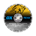 The OX Premium Concrete and General Purpose Diamond Blade is a fast-cutting blade designed for versatility. It effortlessly cuts through masonry products, cured reinforced concrete, and granite. Featuring 10mm turbo segments, this blade ensures efficient cutting across various materials, making it a reliable choice for general-purpose cutting needs.