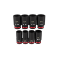 The MILWAUKEE® 8 Piece SHOCKWAVE Impact Duty™ 3/4" Drive Deep Socket Set features the boldest, longest-lasting markings and extreme impact durability in high torque applications. The stamped and ink-filled size markings make it easy to select the right socket every time throughout the life of the socket. Engineered with high strength forged steel for optimised performance in heavy-duty applications, and a non-slip hex geometry prevents fastener rounding. The dual-hole design and ring groove allow for easy socket attachment and removal. All SHOCKWAVE Impact Duty™ Sockets are backed by a Lifetime Guarantee and meet ASME industry standards.