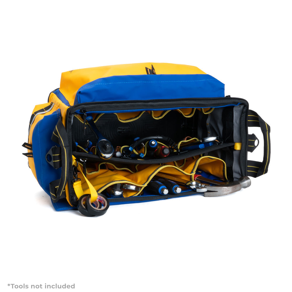 Built for Australian tradies seeking a functional and durable tool storage solution. Constructed from PVC material, this bag boasts a spacious interior with a removable divider, allowing you to customize the storage space to suit your needs. The hard base ensures stability and protection for your tools, while multiple pockets and compartments provide efficient organization for easy access to your gear.